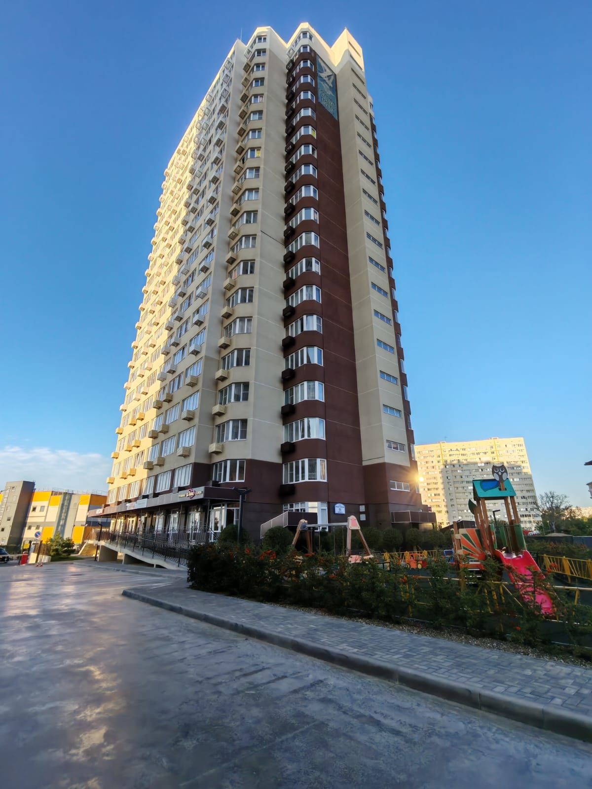 Благоустроенный двор: Зелёный двор с детскими площадками – идеальное место для игр и отдыха всей семьи.