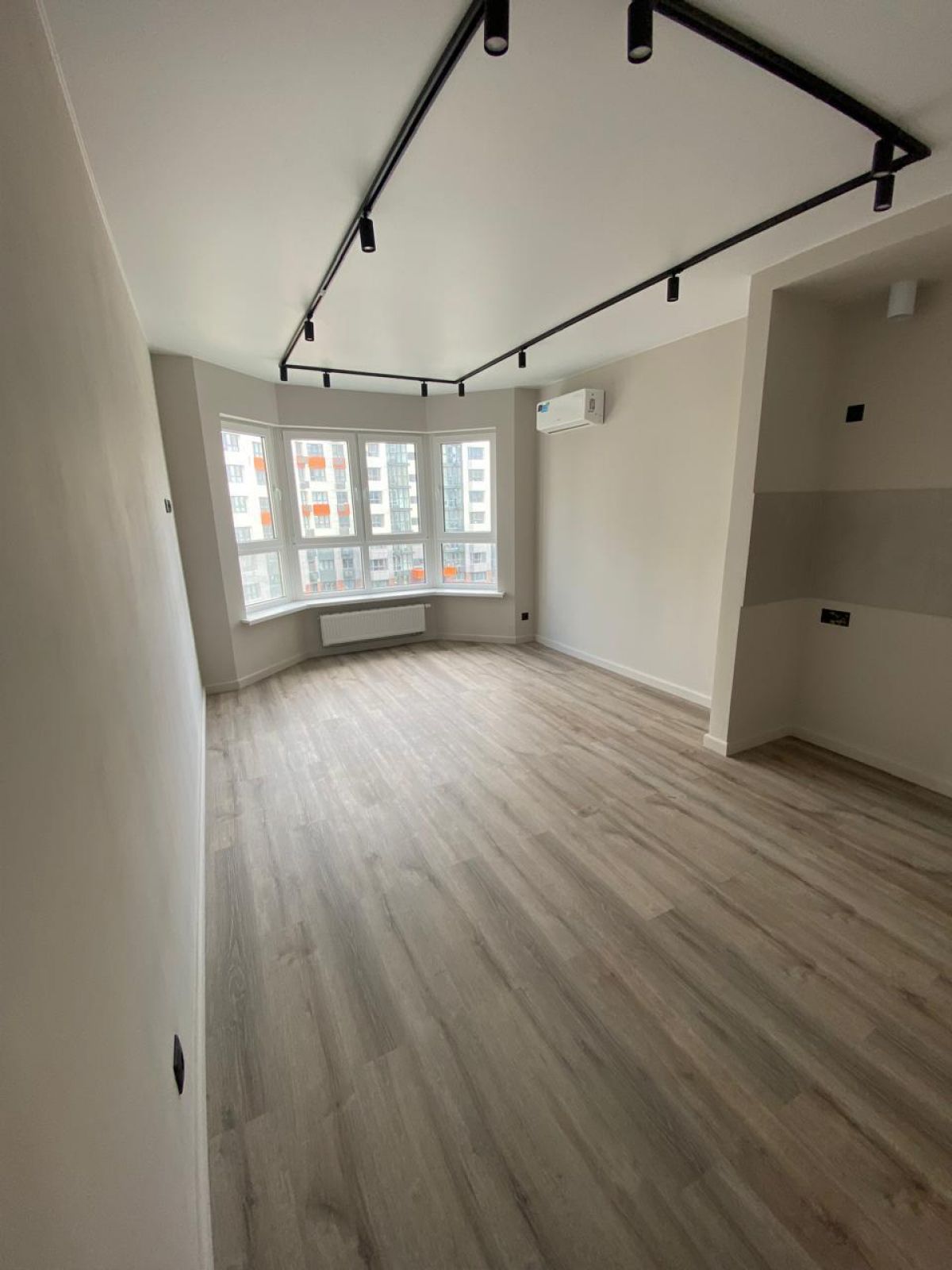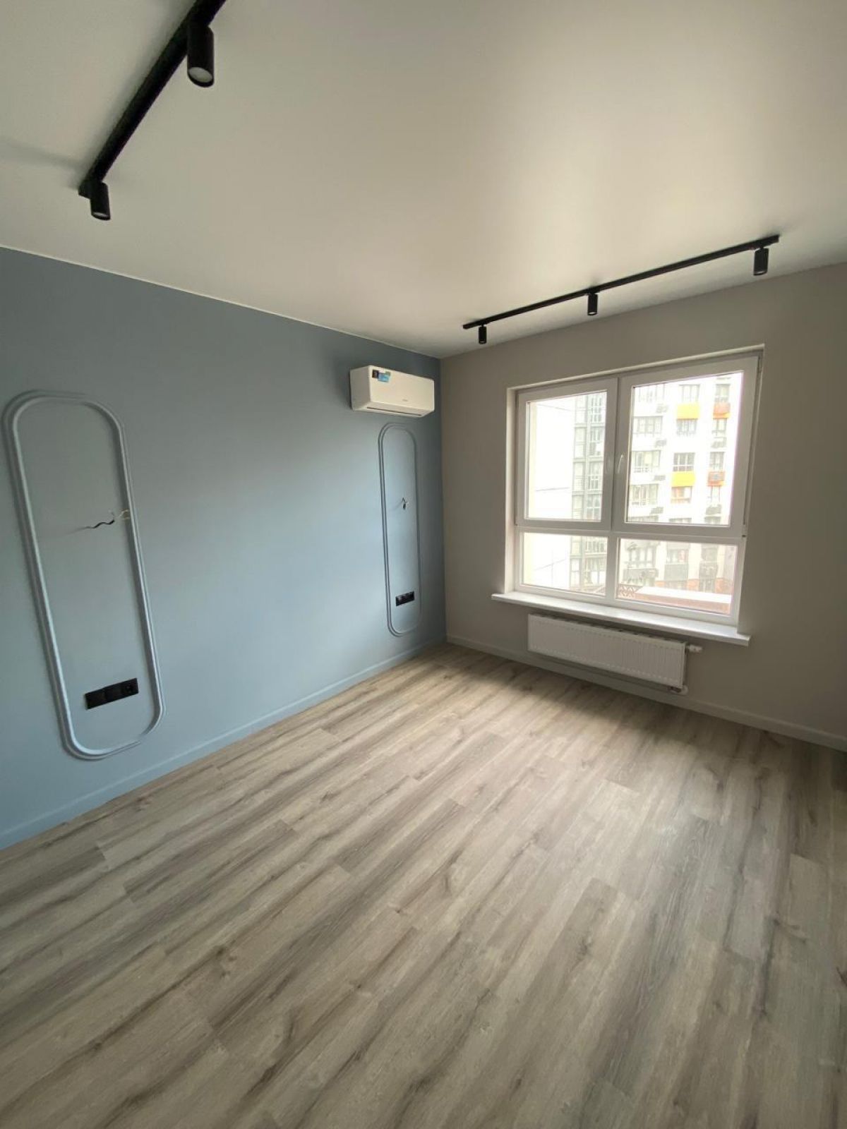 Окна квартиры выходят на восточную сторону - жарко не будет. Тем не менее в квартире установлены сплит-системы для создания комфортной температуры.